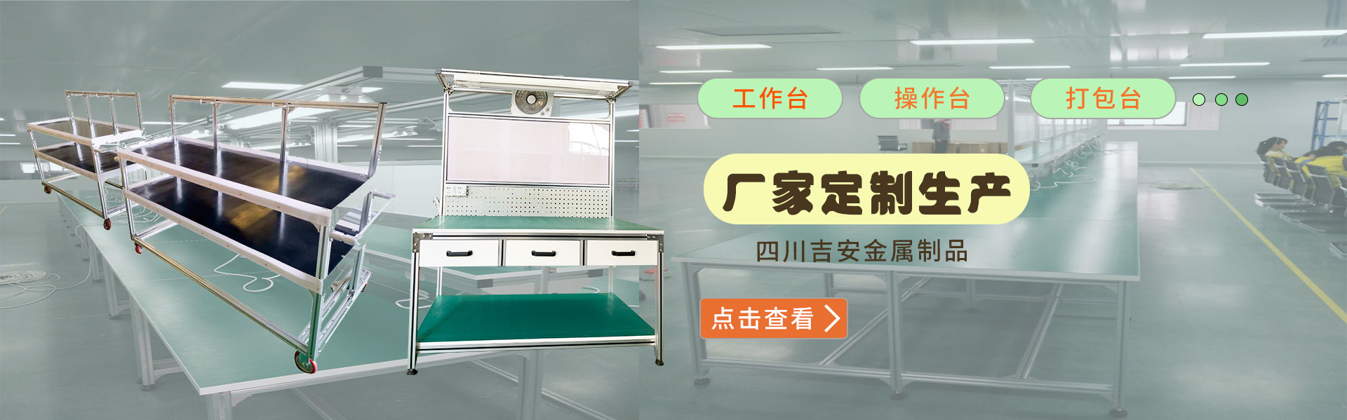 四川吉安金屬制品有限公司是集工業(yè)鋁型材及配件、貨架、工作臺(tái)、皮帶輸送線(xiàn)、自動(dòng)化流水線(xiàn)、線(xiàn)棒精益管及扣件、鈑金和鋁合金流利條、鋁線(xiàn)棒及扣件、倉(cāng)儲(chǔ)設(shè)備、物流器具、周轉(zhuǎn)臺(tái)車(chē)、工位器具、非標(biāo)器具設(shè)...